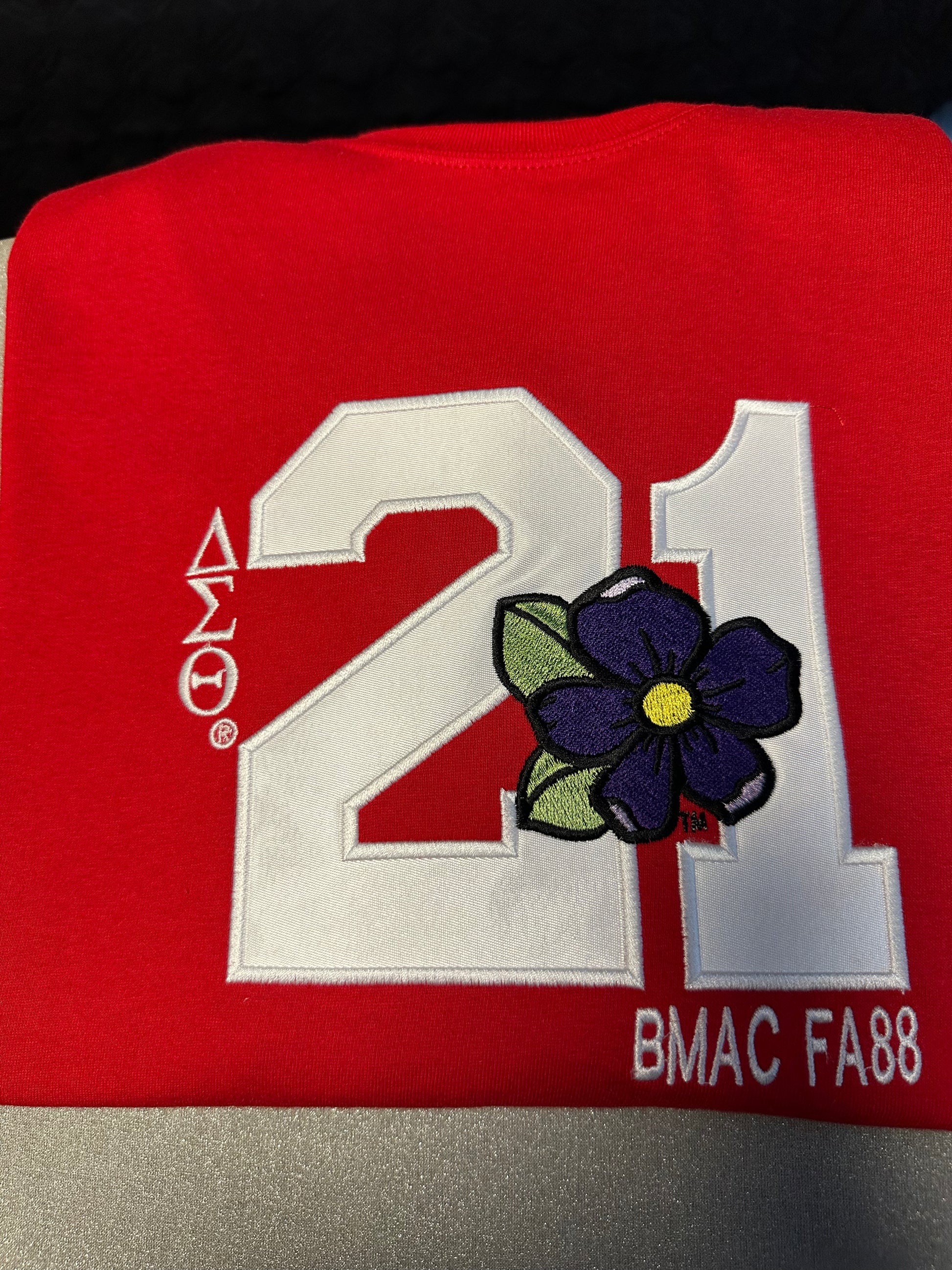 This custom relaxed fit ladies short sleeve tee is designed for the 21 of the Line. Featuring expertly crafted embroidery, the shirt showcases a vibrant purple violet and bold white patches for an extra touch of style.